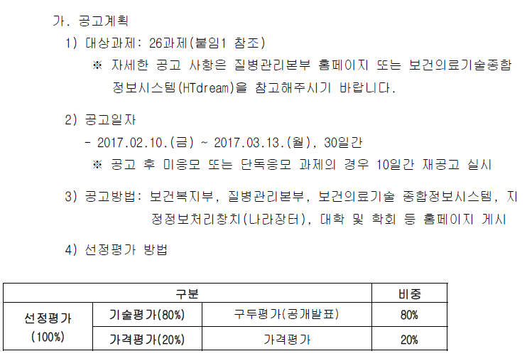 | [질병관리본부] 2017년도 질병관리본부 2차 신규 학술연구개발용역과제 공고 게시 안내 | 2017-02-14 | ||