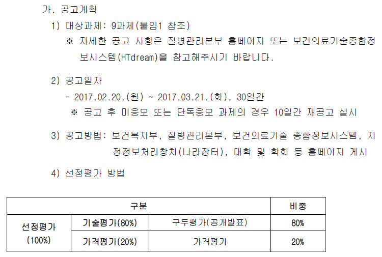 | [질병관리본부] 2017년도 질병관리본부 3차 신규 학술연구개발용역과제 공고 안내 | 2017-02-22 | ||